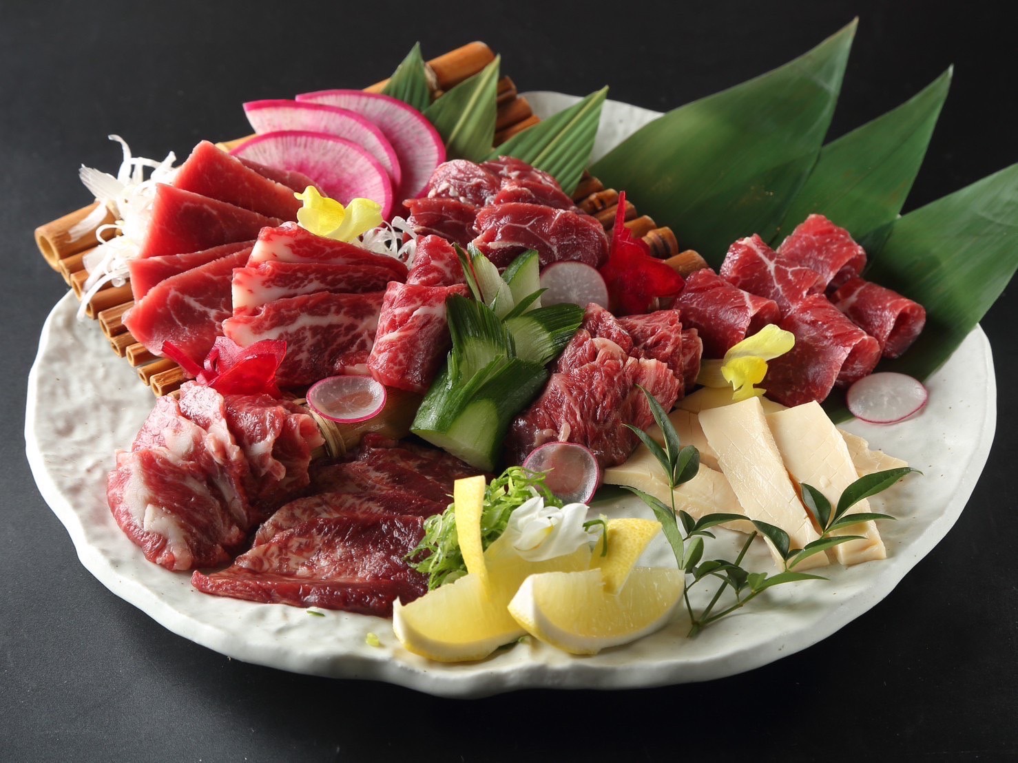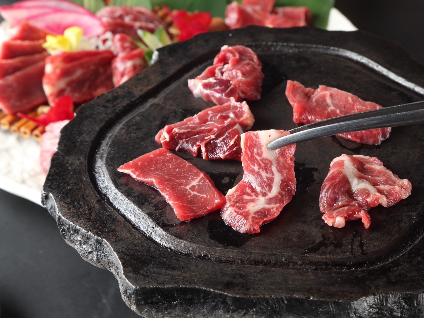 こだわりの馬肉を石焼でお召し上がりください。馬肉の希少部位など色々食べ比べしていただけます。